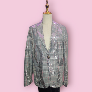 VINTAGE DESIGNER ROBERTO CAVALLI 80'S OVERSIZED SILVER JACKET WITH ANIMAL PRINT DESIGN US IMPORT