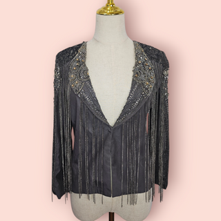 HAUTE HIPPIE - EMBELLISHED WITH FRINGED CHAIN 100% SILK JACKET RRP $670