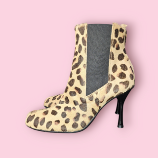ANINE BING - STEVIE LEOPARD PRINT CALFSOLD OUT STYLE HAIRED ANKLE BOOTS EST. RRP $541