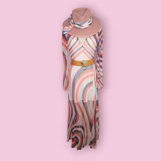 TALULAH - 'RAINBOW SWIRL' 70'S Inspired Silk Dress with Gold Metallic Thread Est. RRP $289