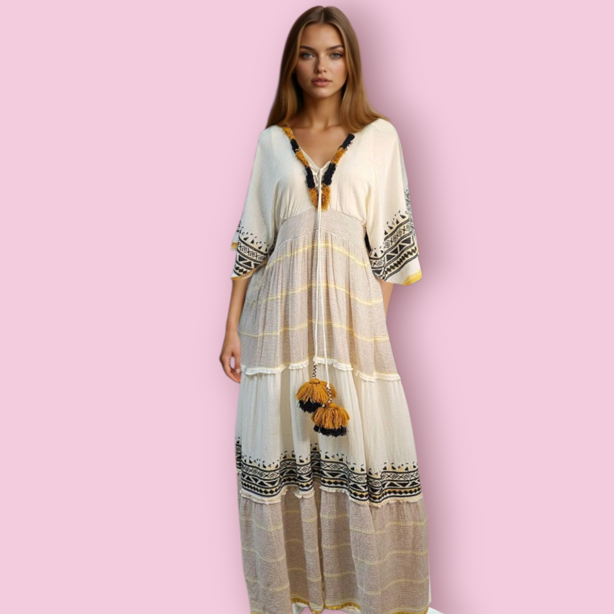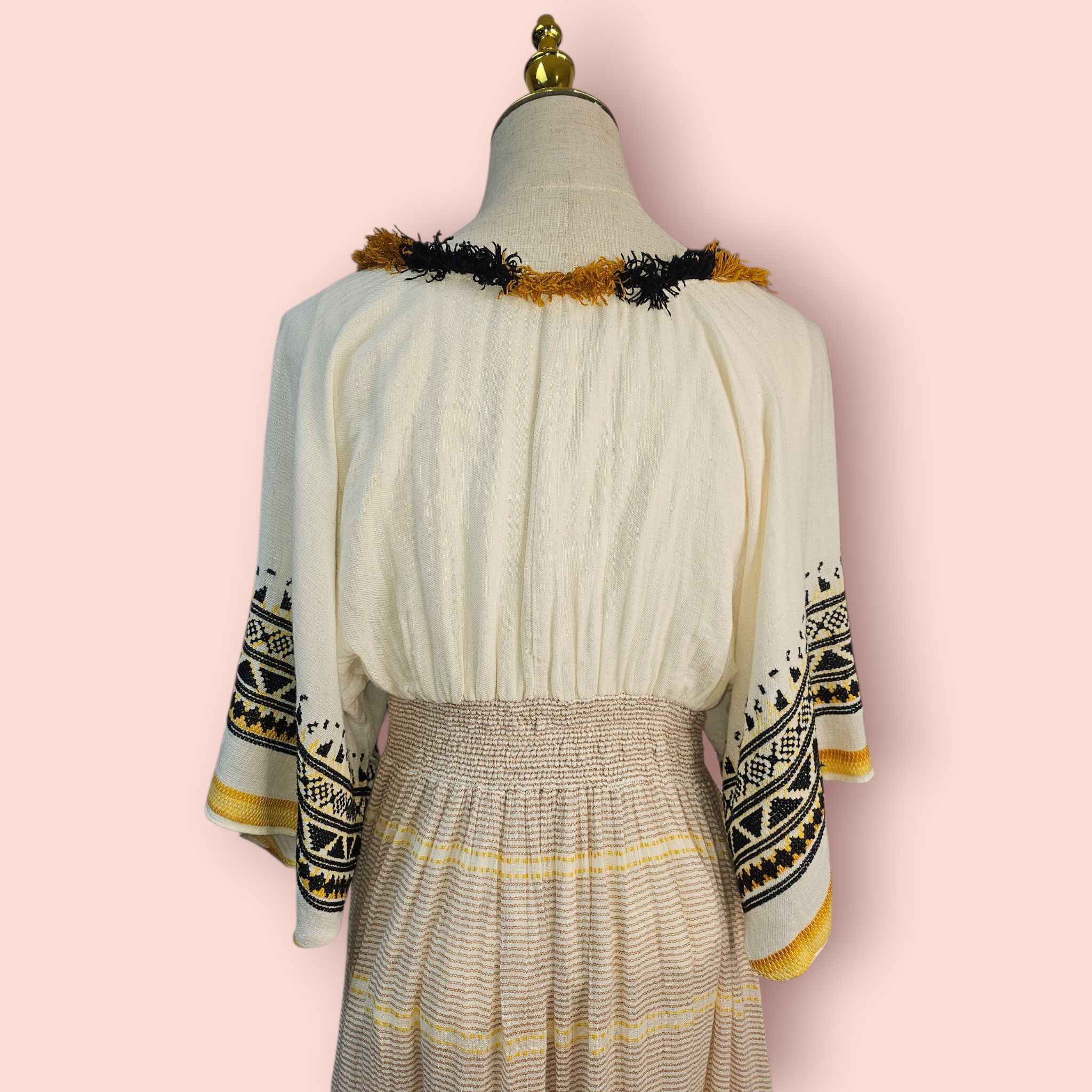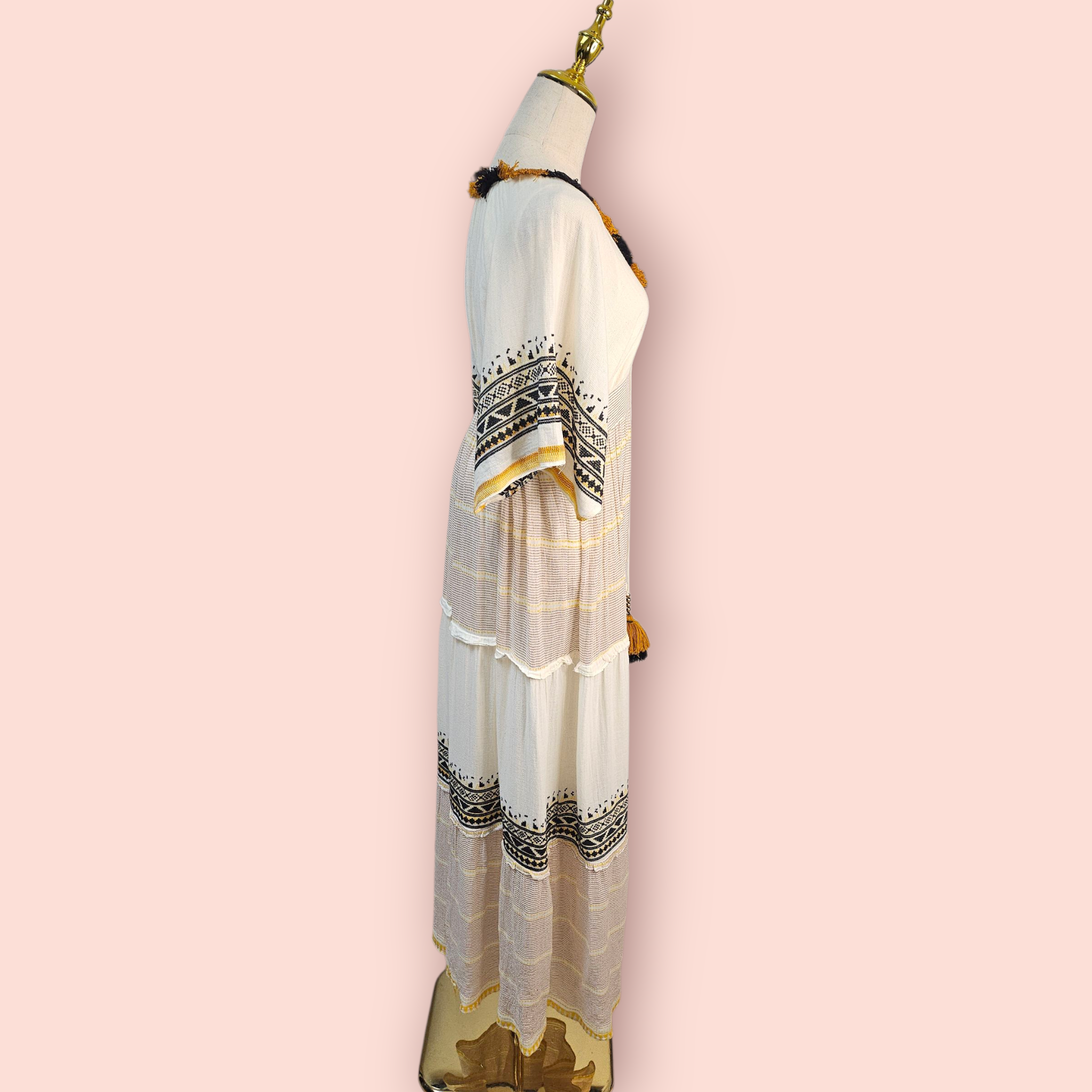 The Hemant & Nandita dress captures the essence of bohemian luxury with impeccable quality and versatile style. Designed for comfort without compromising elegance, this dress effortlessly transitions from casual daytime wear to sophisticated evening looks. Its carefully crafted details and premium materials ensure lasting wear, making it a timeless addition to your wardrobe. Ideal for those who appreciate refined style paired with a relaxed, effortless vibe.