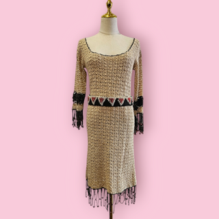 SASS & BIDE - 'GOOD GRACE' INDIVIDUALLY HAND KNITTED FRINGED DRESS Retail Price $549
