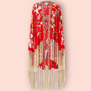 CAMILLA - 'THE LISBOA LUXE' Draped Fringed Kimono Shawl High Low RRP $1300