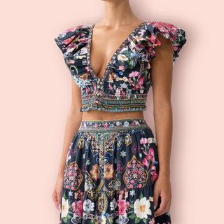 CAMILLA - 'MIDNIGHT IN MONSERRATE' Top & Skirt - Two Piece Set RRP $975 NWT