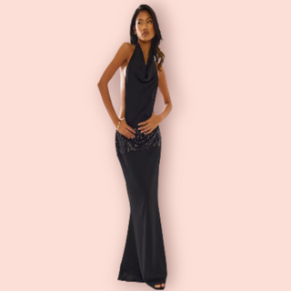 BRONX & BANCO - 'ROMI' Metallic Gown Plunge Neckline Dress est. RRP $790