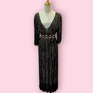 CHASING UNICORNS - BLACK & GOLD LUREX THREAD MAXI DRESS est.RRP $540