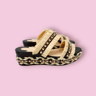 CHRISTIAN LOUBOUTIN - 'VOLTINOUDOU' Raffia Studded Platform Wedge Sandals RRP $1395
