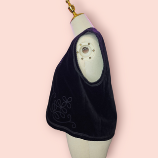 WRAGGS - VINTAGE BLACK VELVETY EMBROIDED OPEN VEST