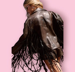 NASTY GAL - REAL LEATHER DISTRESSED STAR CUT OUT FRINGE JACKET & SHORTS BNWT - SET RRP $840