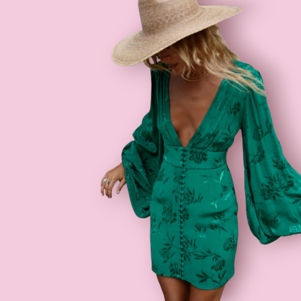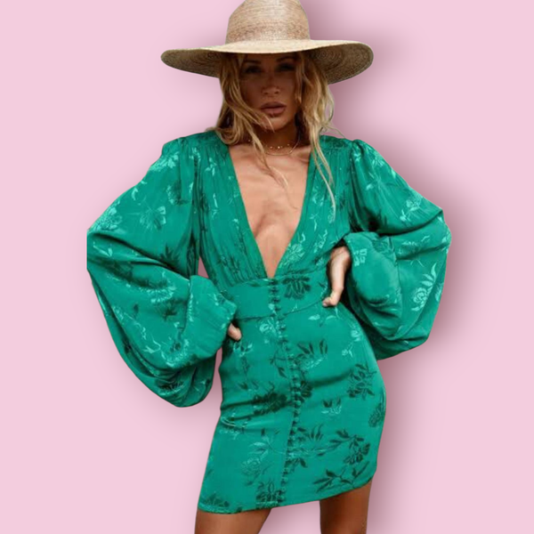 The RAT & BOA 'ISABELLA' Dress exudes bohemian elegance with its plunging neckline and dramatic billowing sleeves. Designed for those seeking a sleek yet standout party look, this dress combines sophisticated tailoring with free-spirited flair, making it an ideal choice for memorable evening occasions.