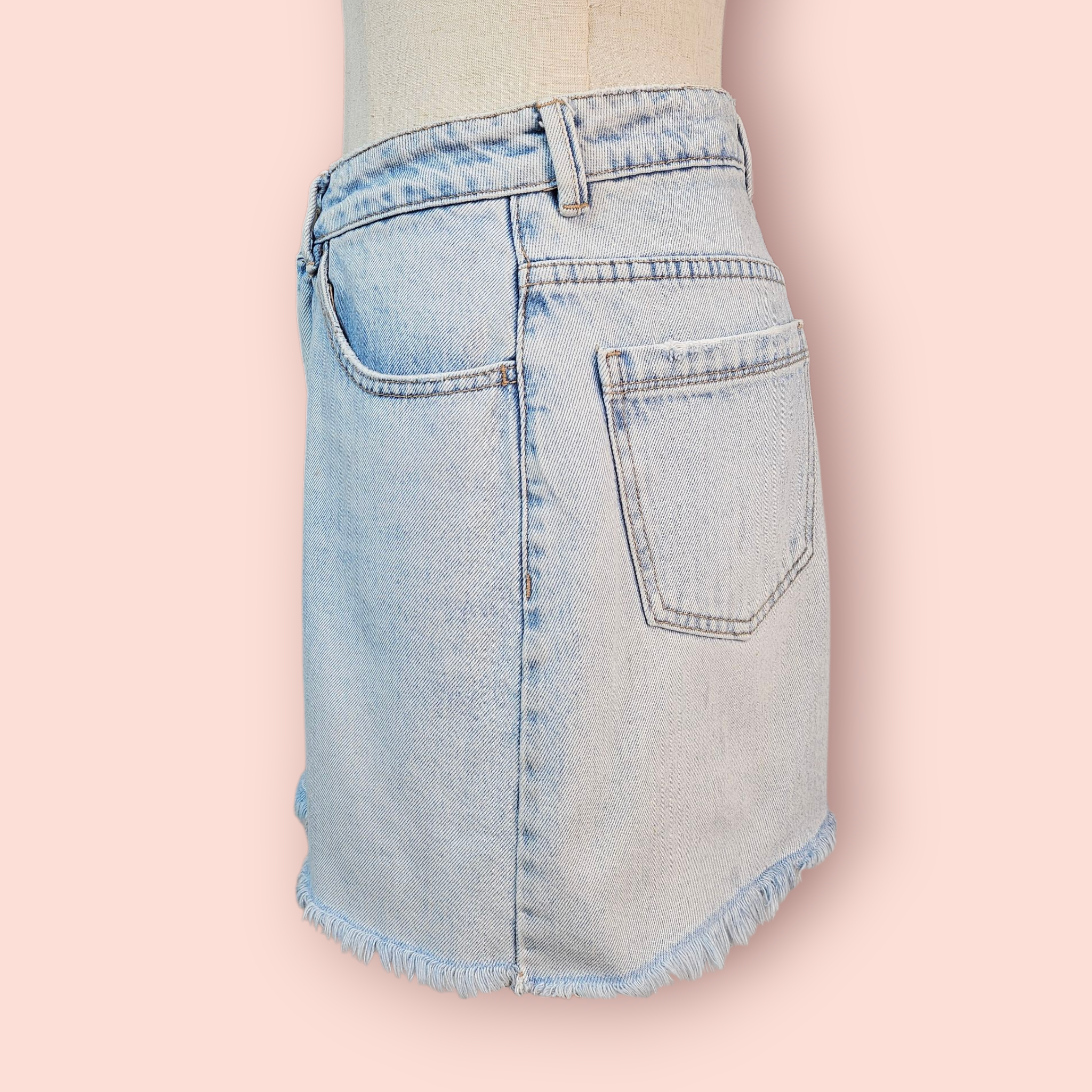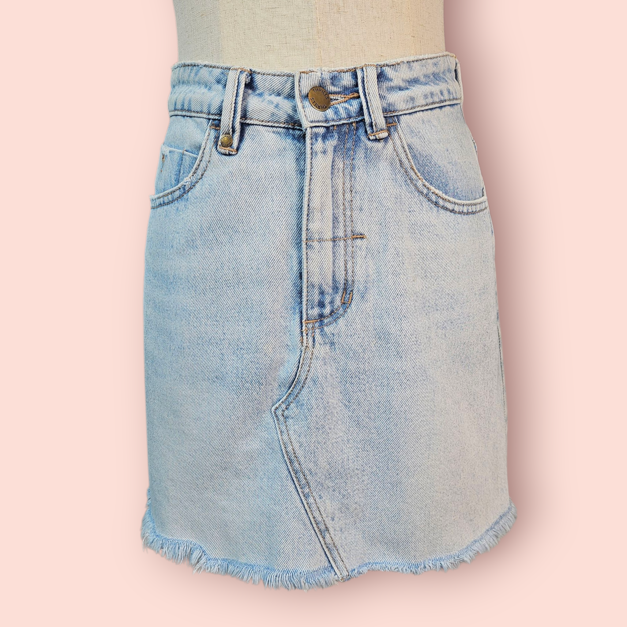 This light blue denim skirt from Thrills is a summer essential, crafted with a high-waisted fit and raw hem detailing for a laid-back yet polished look. Its versatile shade pairs effortlessly with a variety of summer tops, making it a reliable choice for warm-weather styling. Designed by the iconic Australian brand, this skirt combines timeless appeal with contemporary edge.