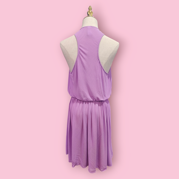 Take on any adventure with the ZIMMERMANN DRESS! This versatile dress boasts a dramatic oversized cowl neckline, racer back with an elastic waist for a comfortable fit. Featuring a beautiful so8cm lid lilac colour it's perfect for any summer occasion. Simply toss on your favorite belt for a touch of personal style. Comfortable, elegant and sophisticated with a touch of allure. This dress is the perfect dress for wedding guest, cocktail parties and all summer occasions.
