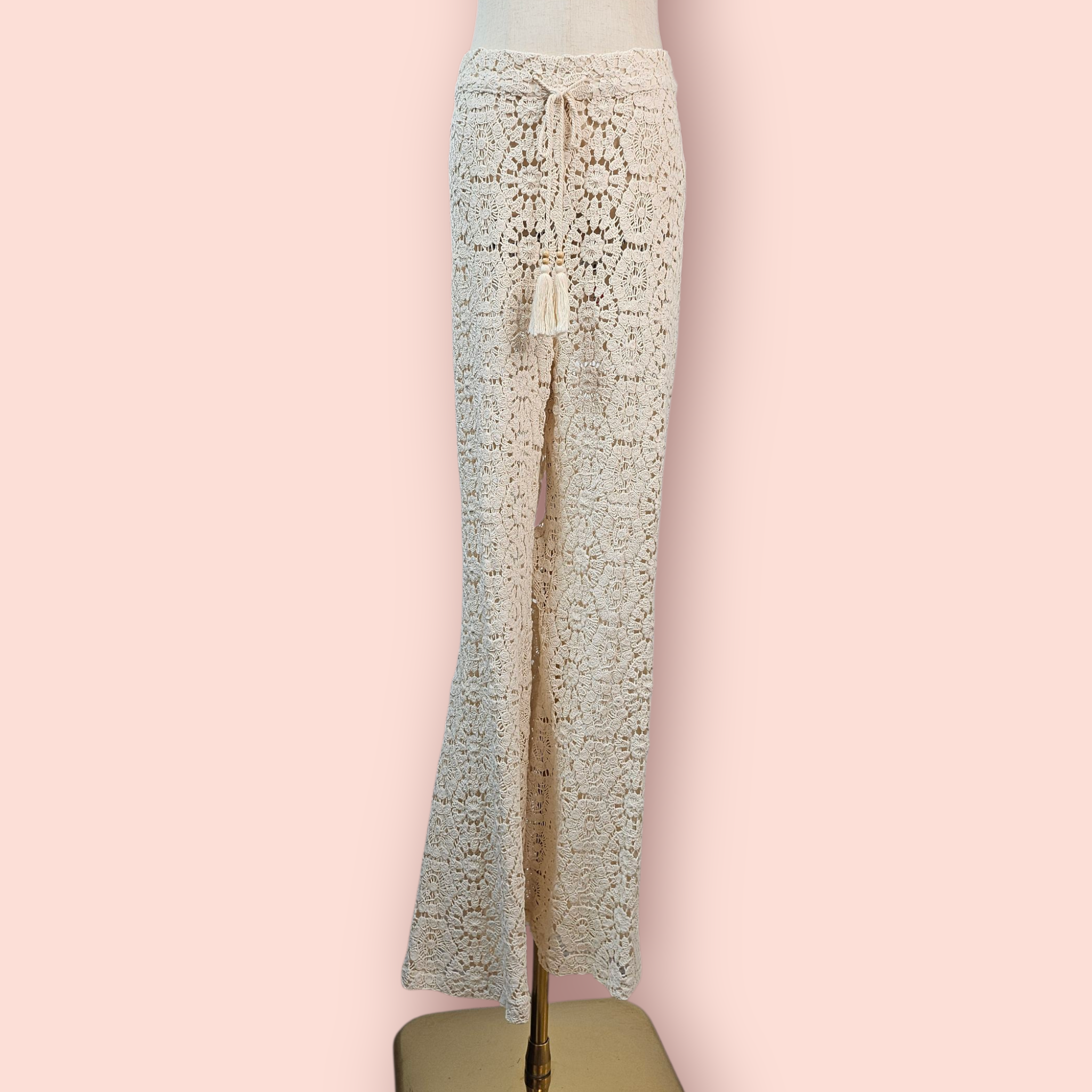 These Helena Crochet Flare Bells in cream capture the essence of bohemian style with their intricate crochet detail and flattering bell-bottom silhouette. Crafted for year-round versatility, they effortlessly elevate any wardrobe, offering a unique blend of comfort and fashion-forward design. Perfectly suited for layering or standalone wear, these flare bells are essential for those seeking a distinctive yet timeless statement piece.