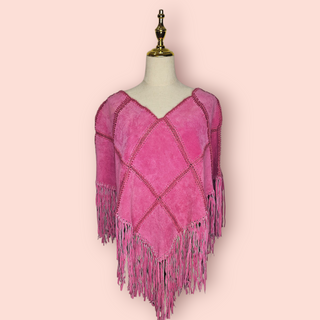WILSONS LEATHER - Pink Suede and Crochet Suede Fringe Poncho NWT