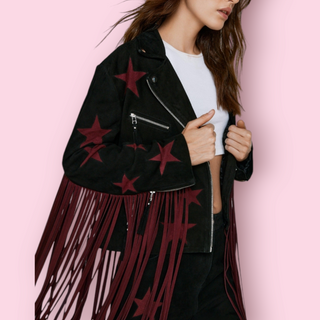 NASTY GAL - SUEDE FRINGED STAR BIKER JACKET BNWT RRP $899